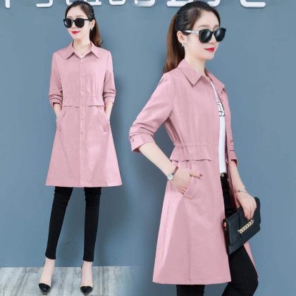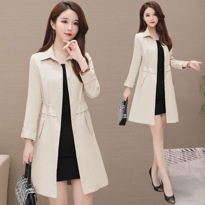 | nameOriginal | Women's Mid-length Windbreaker 2022 Spring and Autumn New Solid Color Korean Style Slim-fit Tight Waist plus size Slimming Elegant Coat Trendy |