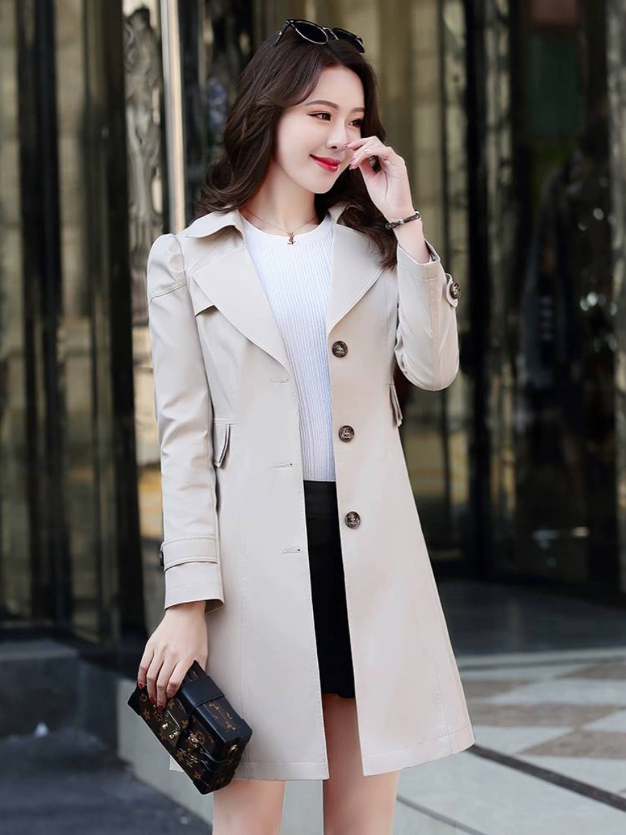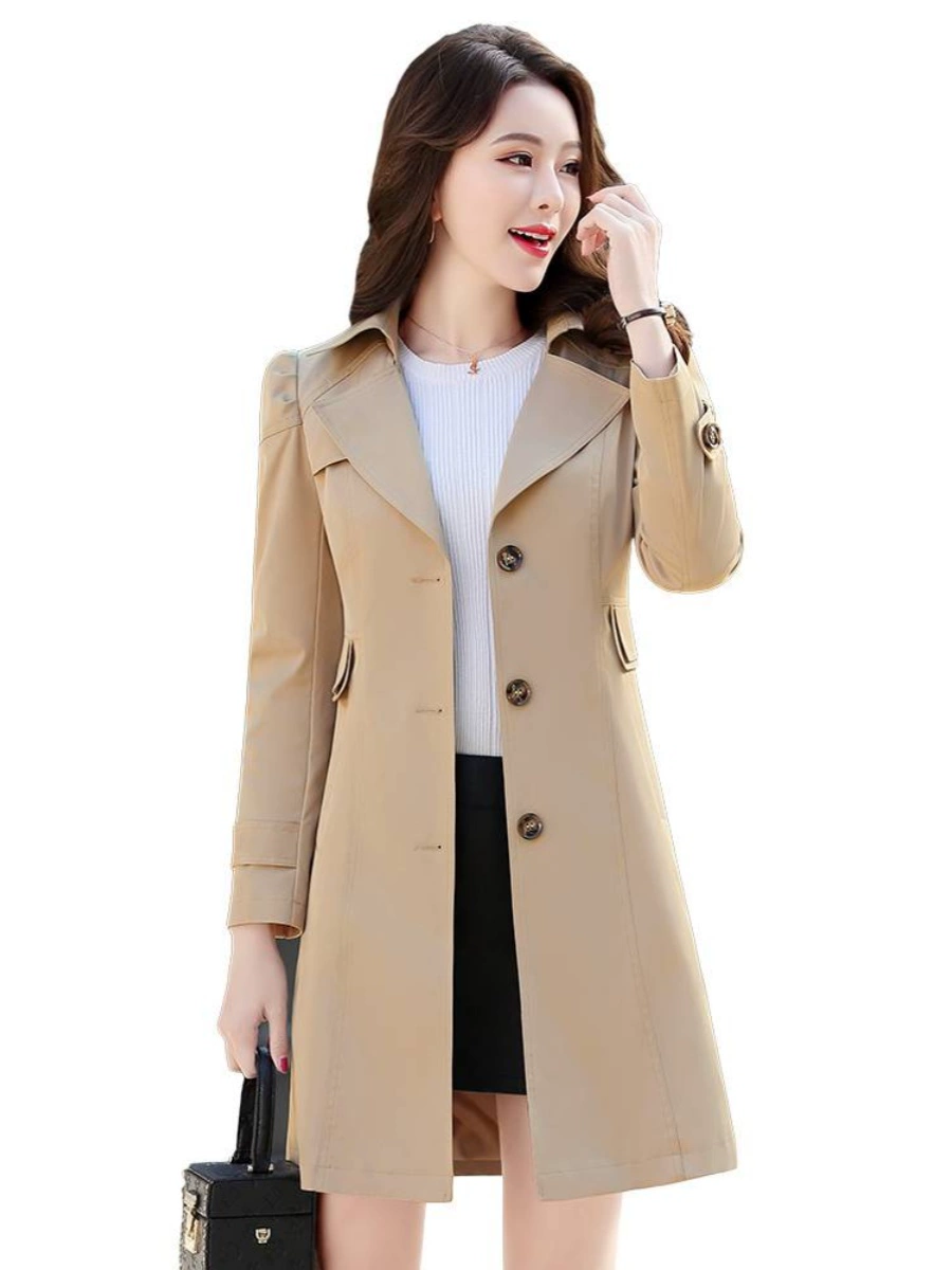 | nameOriginal | Women's mid-length windbreaker for small people 2023 spring and autumn wear temperament fashion slim waist slimming solid color versatile jacket |