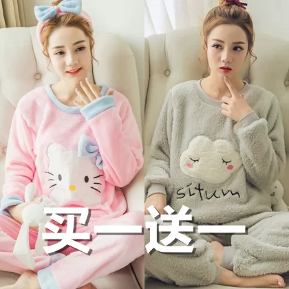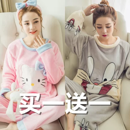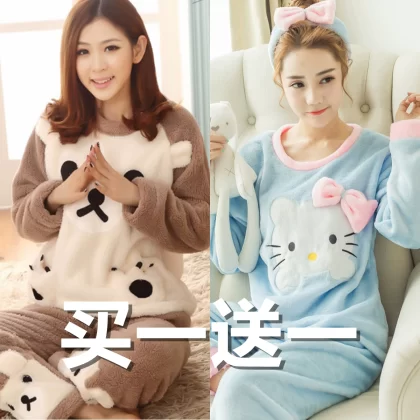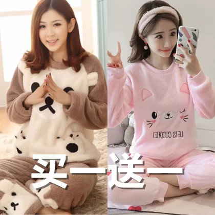 | nameOriginal | Women's new thickened cute winter flannel pajamas |