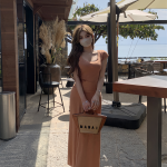 فستان نسائي صيفي جديد برقبة على شكل حرف U باللون البرتقالي