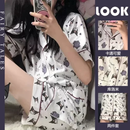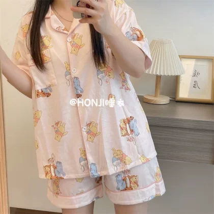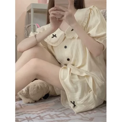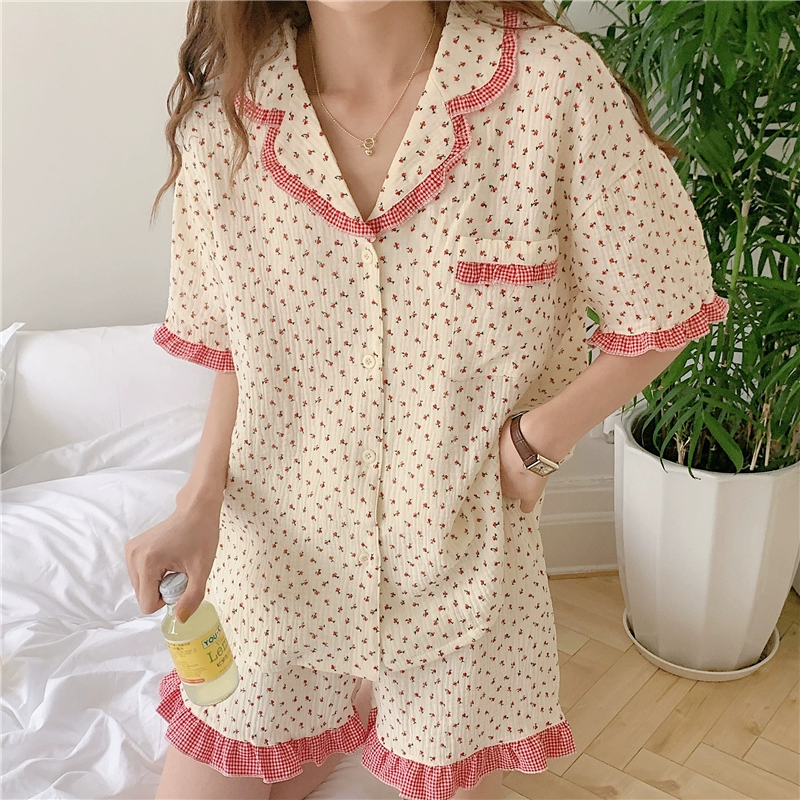 Women's plaid cotton short-sleeved shorts summer pastoral pajamas