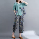 | nameOriginal | Women's plus size fat mm patchwork printed wide leg pants short sleeves |