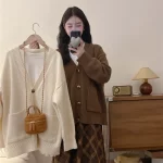 | nameOriginal | Women's plus size long sleeve T-shirt plaid knitted jacket |