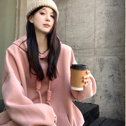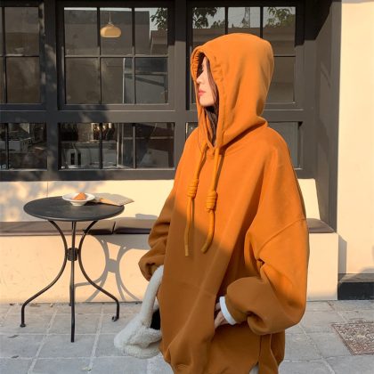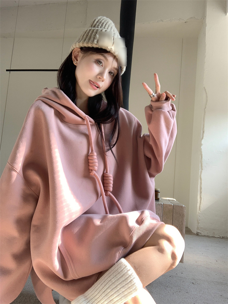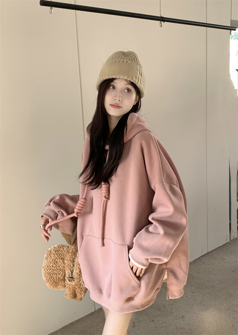 | nameOriginal | Women's Plus Size Solid Color Loose Hooded Lazy Style Sweater Winter New Fat Girl's Mist Casual Top |