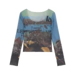 | nameOriginal | Women's Printed Round Neck Long Sleeve Summer Slim Mesh |
