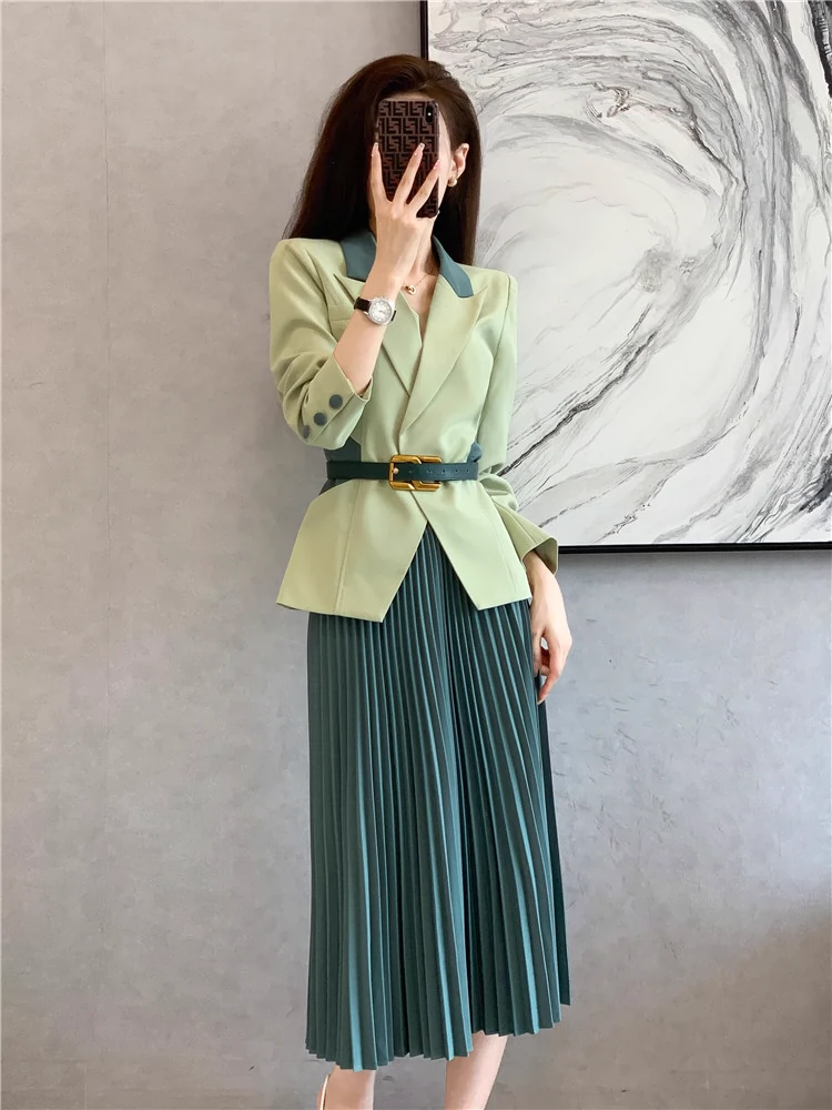 | nameOriginal | Women's professional style waist pleated skirt blazer |
