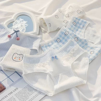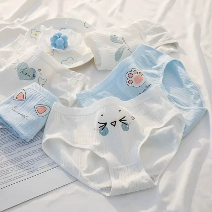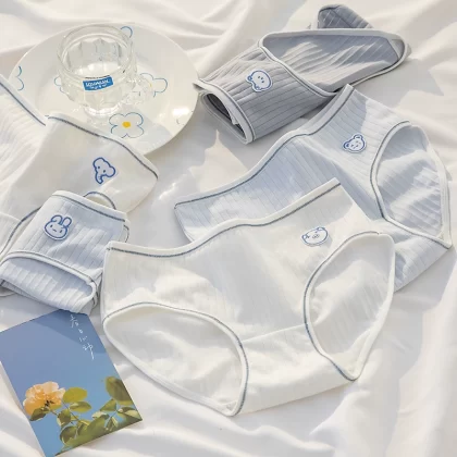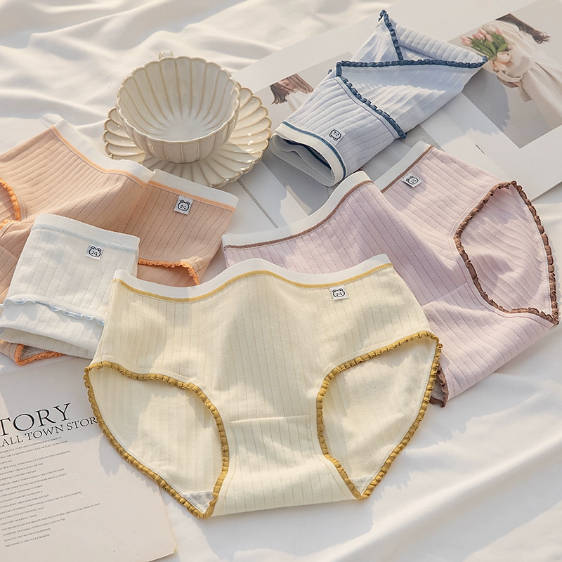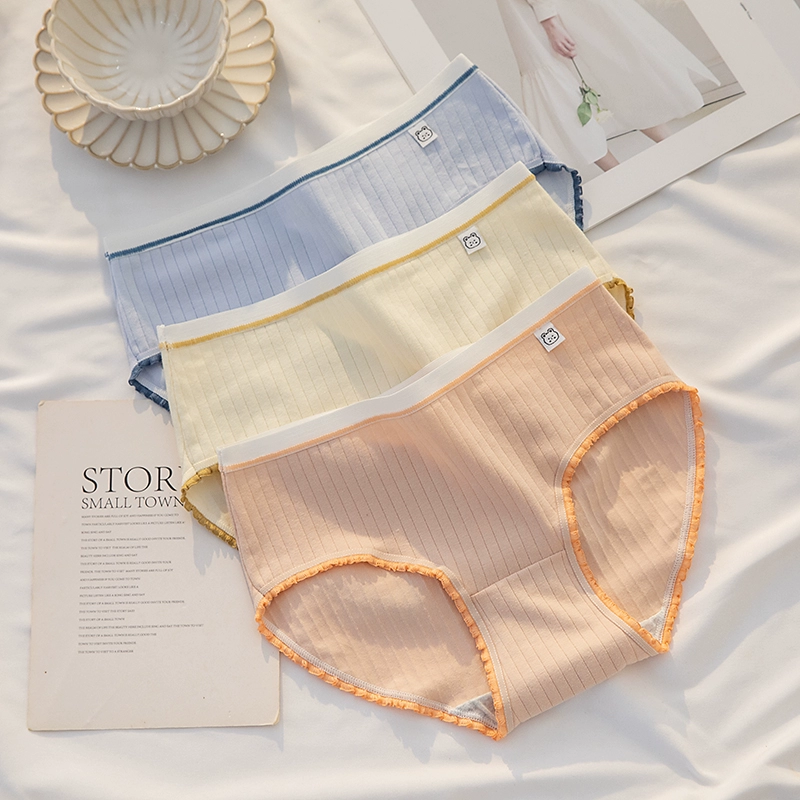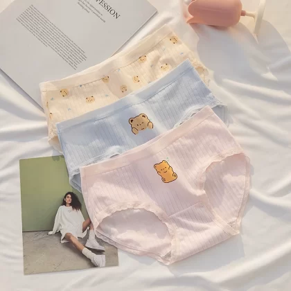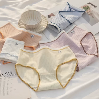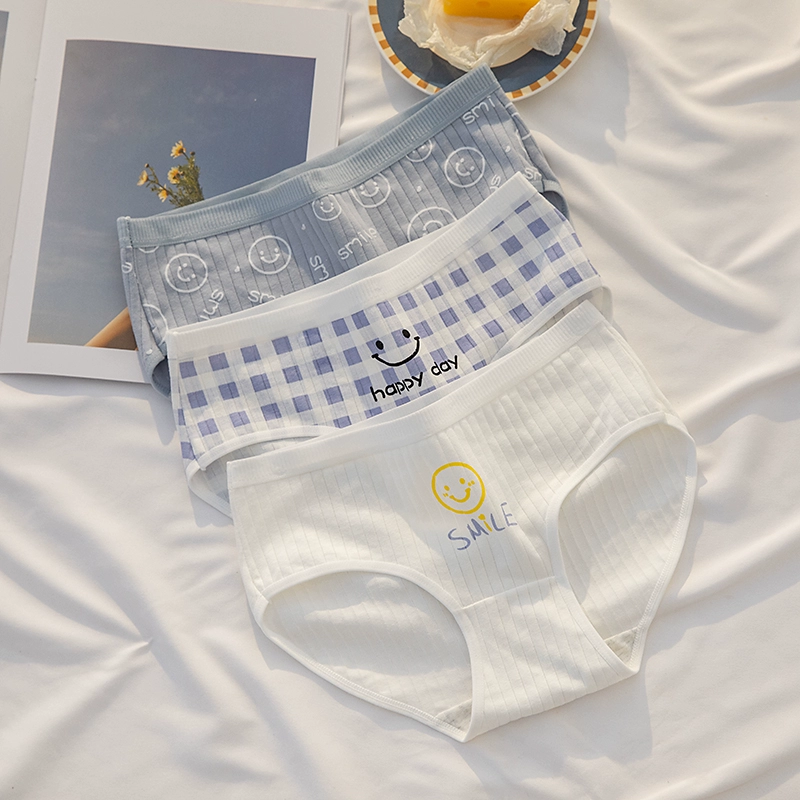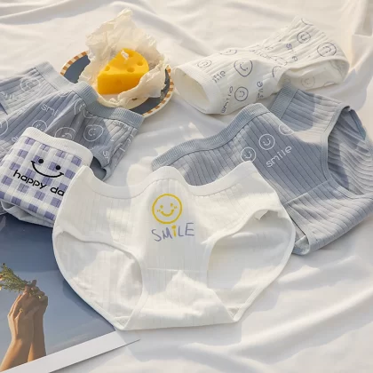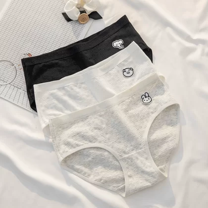 ملابس داخلية نسائية من القطن الخالص مضادة للبكتيريا باللونين الأسود والأبيض والرمادي بتصميم بسيط