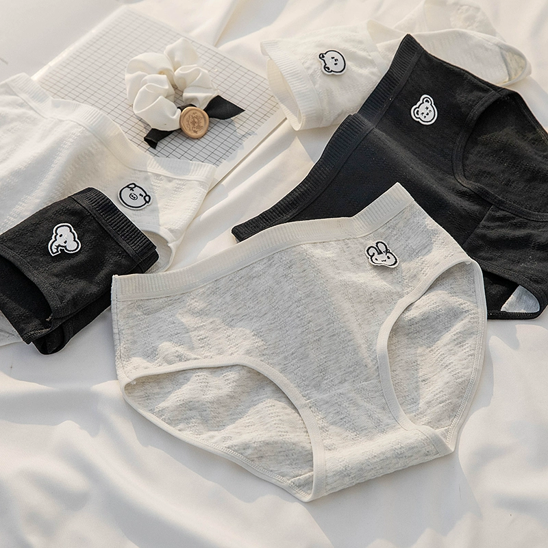 Women's pure cotton antibacterial black and white gray simple style thin underwear