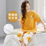 Women's pure cotton cropped pants with breast pads, Korean style floral pajamas