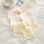 Women's pure cotton summer thin mid-waist antibacterial 100% cotton lace edge sexy new large size shorts