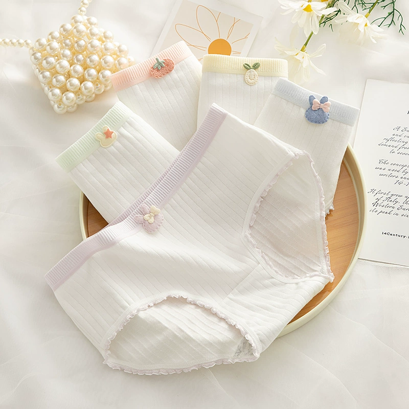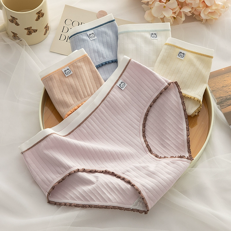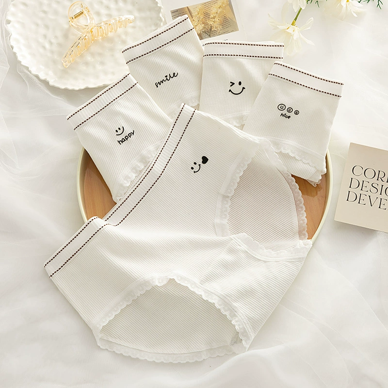 نساء صيف القطن النقي للسيدات متوسط ​​الخصر المضاد للبكتيريا 100 ٪ حافة الدانتيل القطن مثير