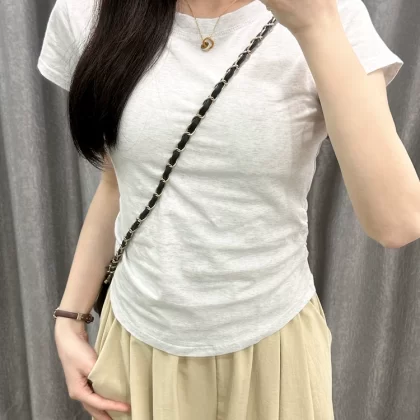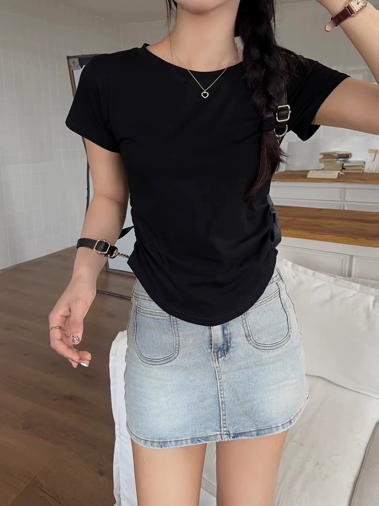 | nameOriginal | Women's right-shoulder design niche slim-fitting short-sleeved T-shirt |