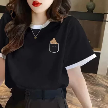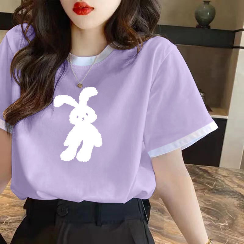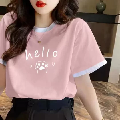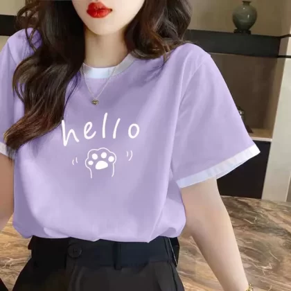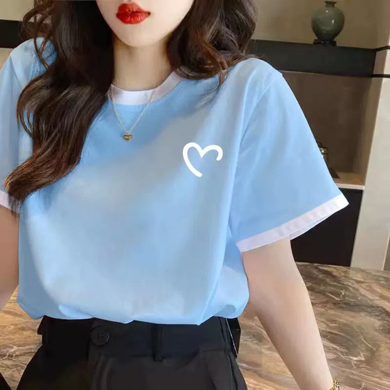 | nameOriginal | Women's right shoulder summer pure cotton contrasting short-sleeved T-shirt |