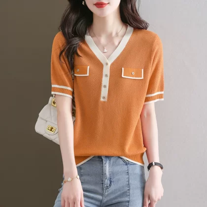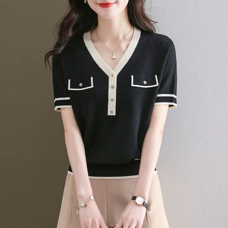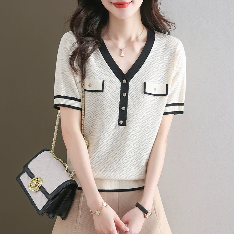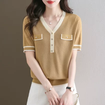 Women's Short Sleeve 2024 New Fashion Tencel Sweater