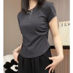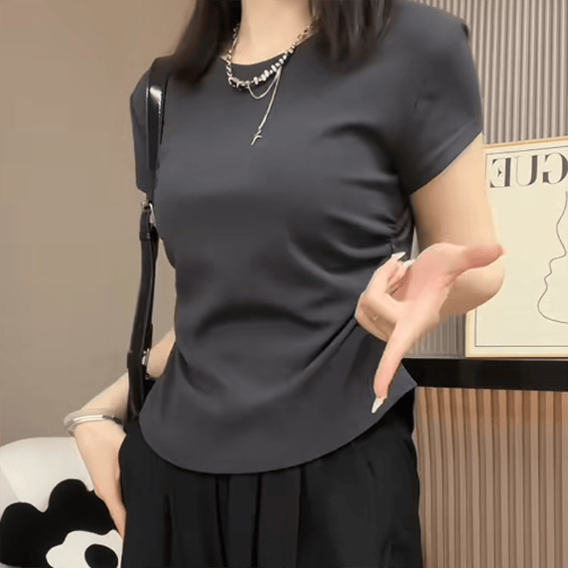 | nameOriginal | Women's Short-sleeved Short-sleeved Cotton Irregular Waistline T-shirt Summer plus size chubby girl Belly-covering Slimming Chic Pleated Top |