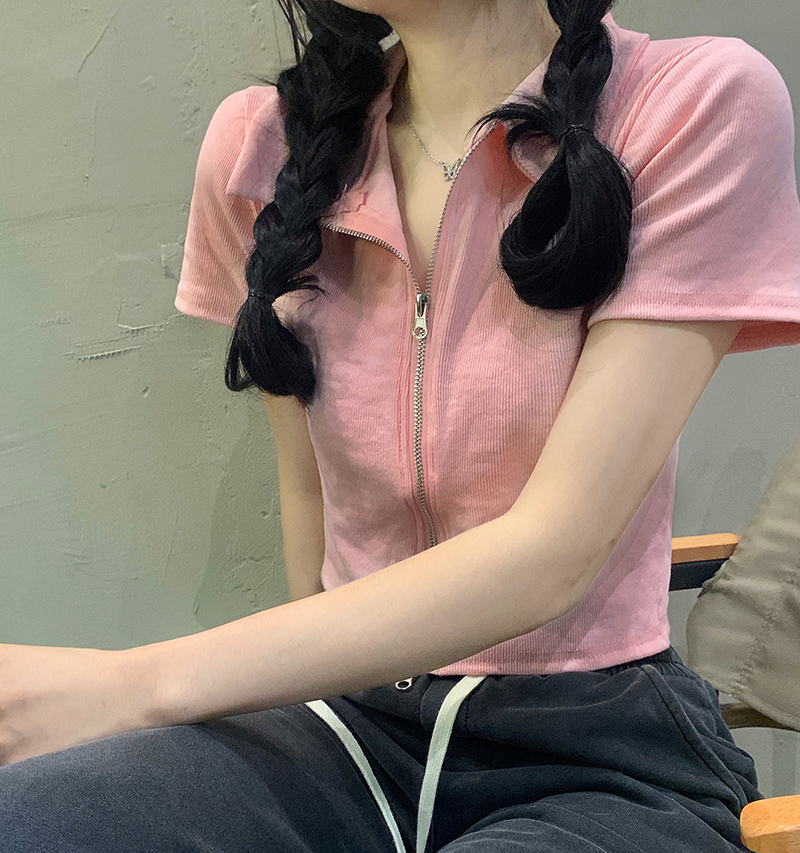 | nameOriginal | Women's short-sleeved shoulder T-shirt summer 2023 new design polo collar sweet hot girl short niche unique top |