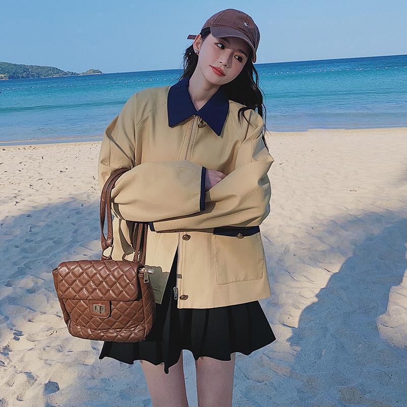 | nameOriginal | Women's short windbreaker coat women's spring and autumn small 2024 New stitching contrast color casual Korean short coat |