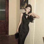 طقم تنورة طويلة نسائية ذكية عالية الخصر تعانق الورك من قطعتين من الساتان