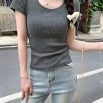 | nameOriginal | Women's Solid Color Right Shoulder Summer Slim Short Sleeve T-Shirt |
