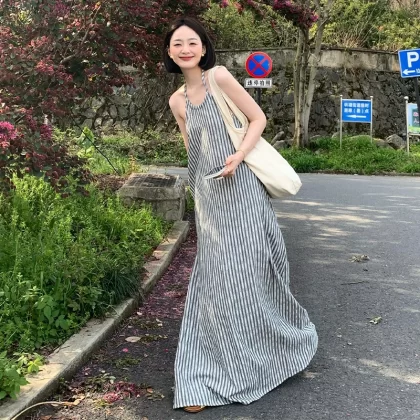 | nameOriginal | Women's summer beach dress travel loose backless halter neck |
