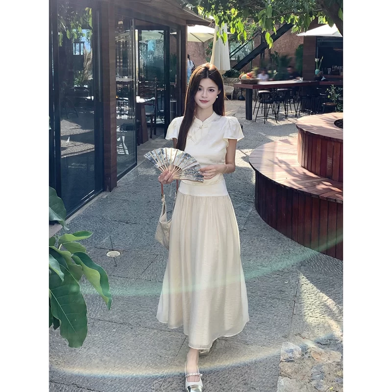 nameOriginal | Women's summer butterfly puff sleeves bud skirt with buckle |