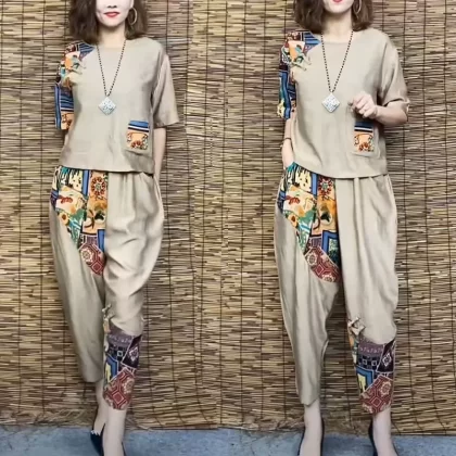 | nameOriginal | Women's summer casual harem nine-point pants cotton and linen short-sleeved T-shirt |