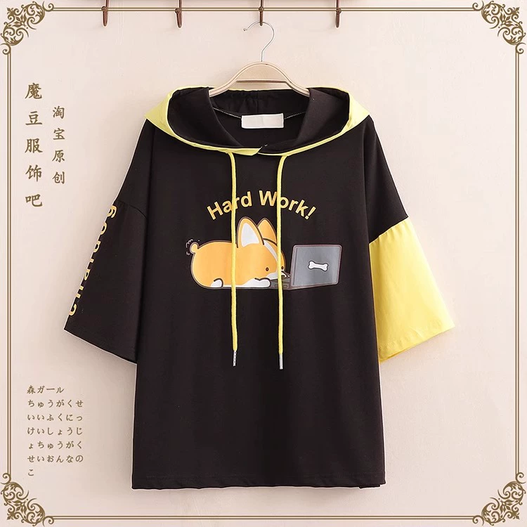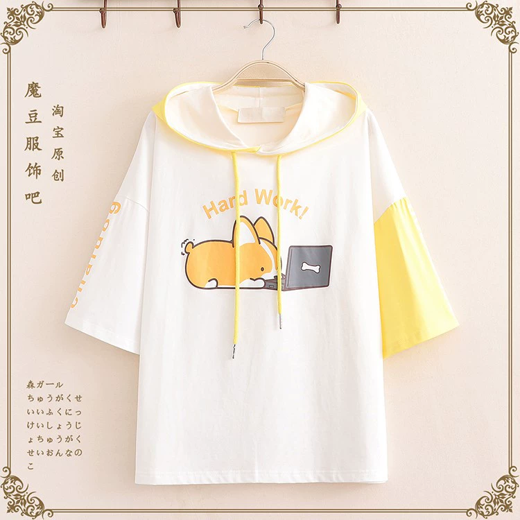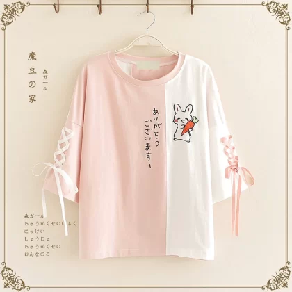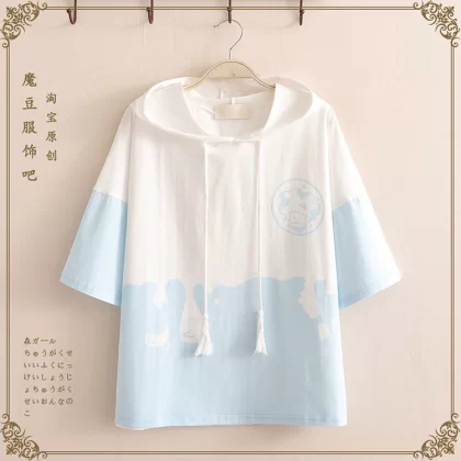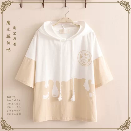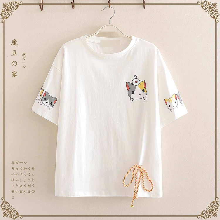 صيف النساء اللطيفات الأذن اللطيفة القميص القصيرة للأكمام