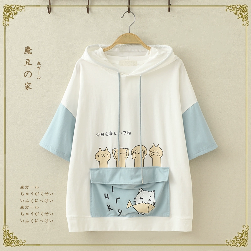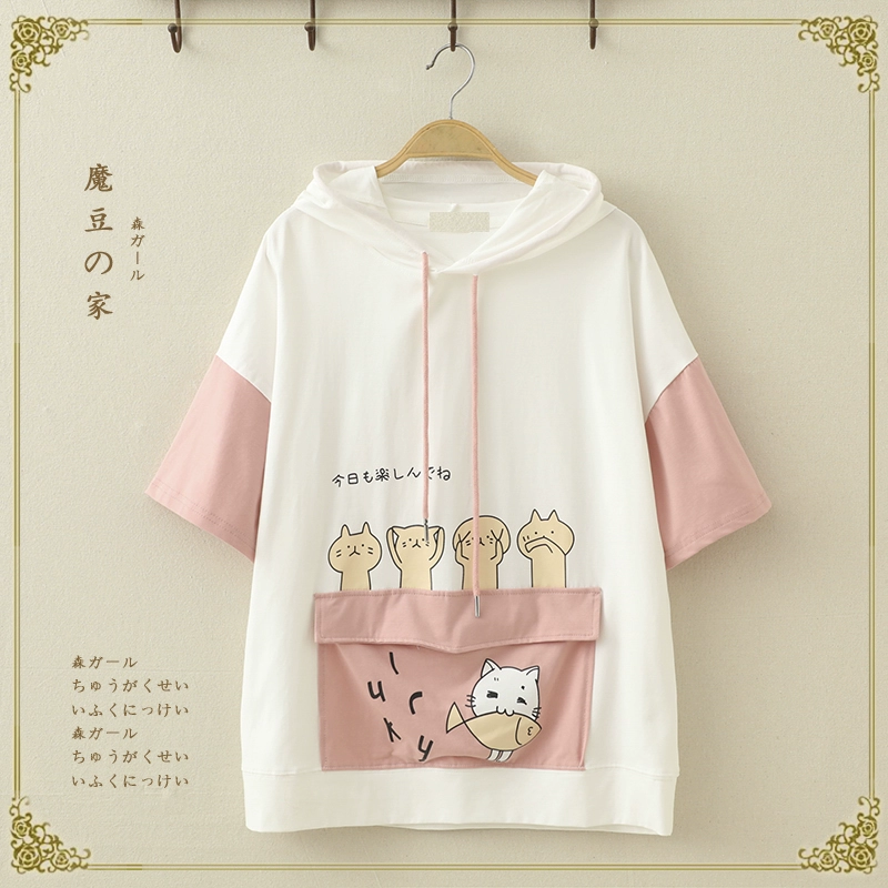 Women's Summer Cute Ear Tops Older Children's Short Sleeve T-Shirts
