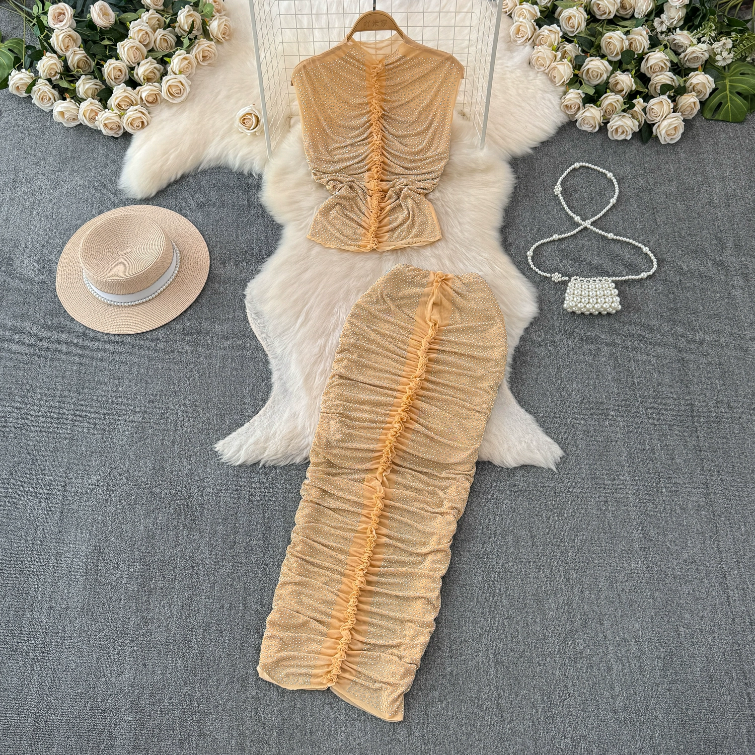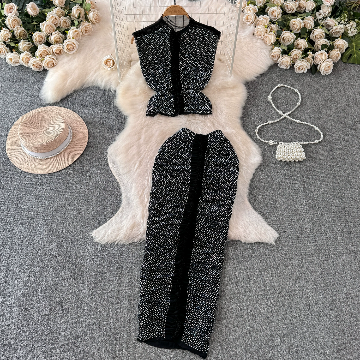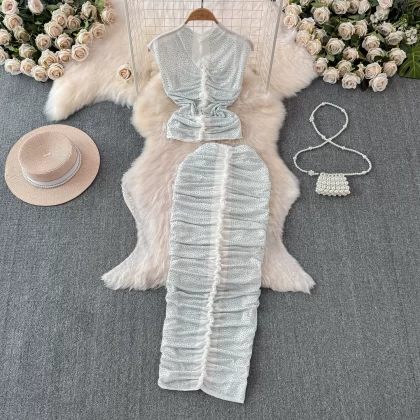 | nameOriginal | Women's summer elastic hip-hugging vest with sparkling diamonds to show your figure |