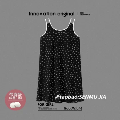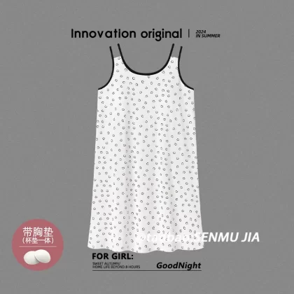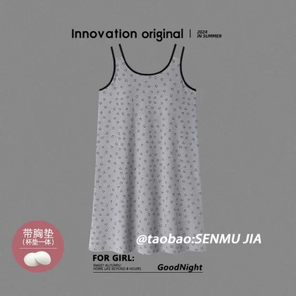 | nameOriginal | Women's summer nightgown with breast pads, modal ice silk vest, sleeveless, full printed smiling face, sexy home wear |