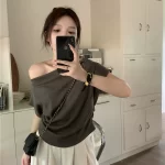 Women's summer off-shoulder short-sleeved T-shirt floor-length fashion suit