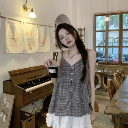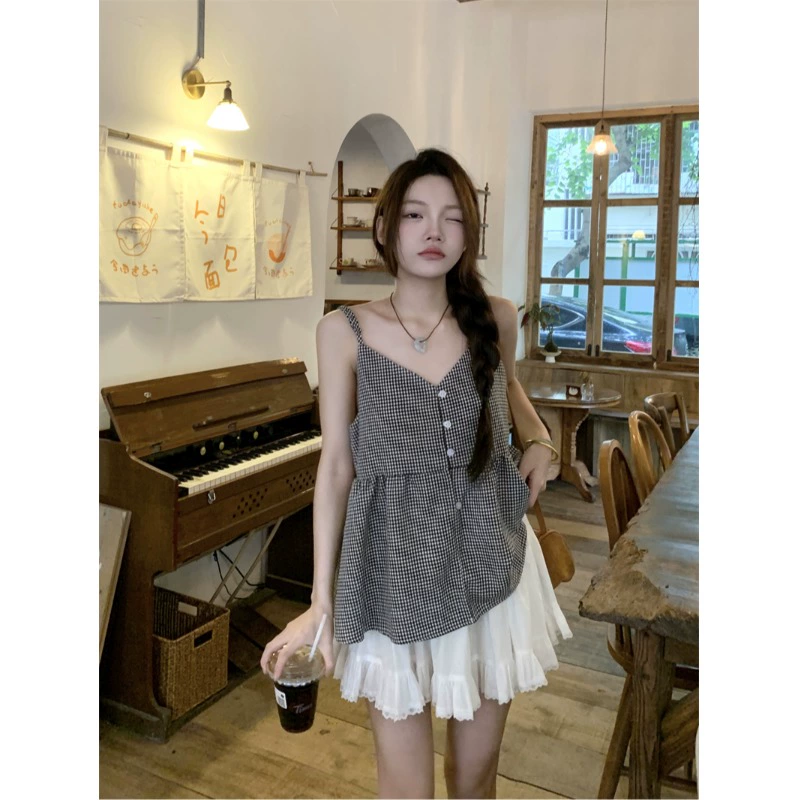 | nameOriginal | Women's Summer Plaid Lace Spliced Two-piece Suspender Set |
