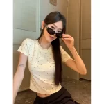 | nameOriginal | Women's summer polka dot right shoulder drawstring A-line short-sleeved T-shirt |