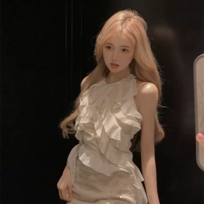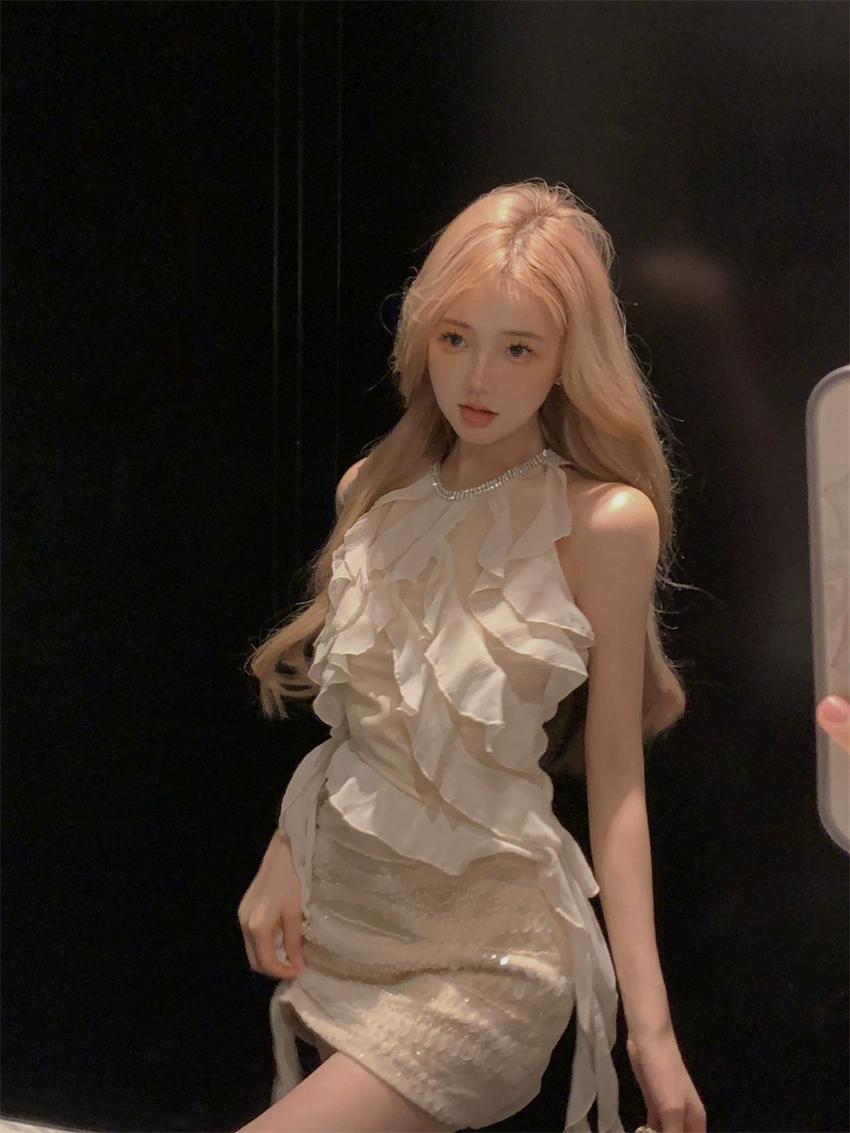 Women's summer sequined two-piece halterneck set in diamond chiffon