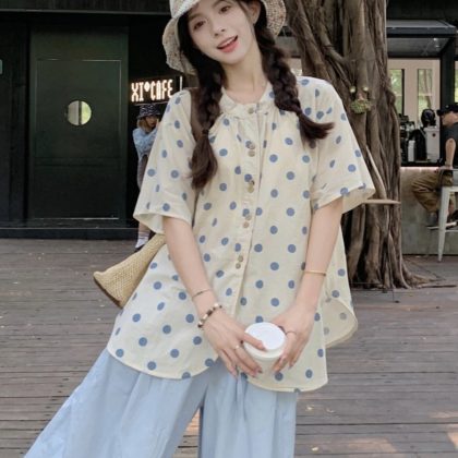 | nameOriginal | Women's Summer Sweet Polka Dot High Waist Slimming Short Sleeves |