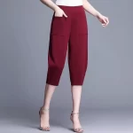 Women's summer thin cropped pants 2024 new large size mom women's pants casual harem pants three-quarter length medium pants short pants