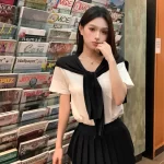 تنورة نسائية صيفية بيضاء بطيات مع شال وأكمام قصيرة