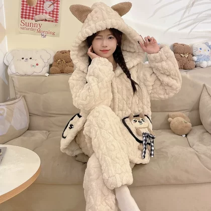 | nameOriginal | Women's three-layer quilted plus fleece winter warm and cute pajamas |