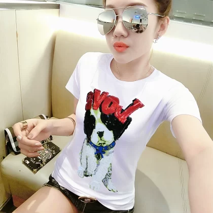 | nameOriginal | Women's tops dog sequin embroidered cotton t-shirt summer wear |