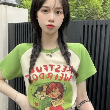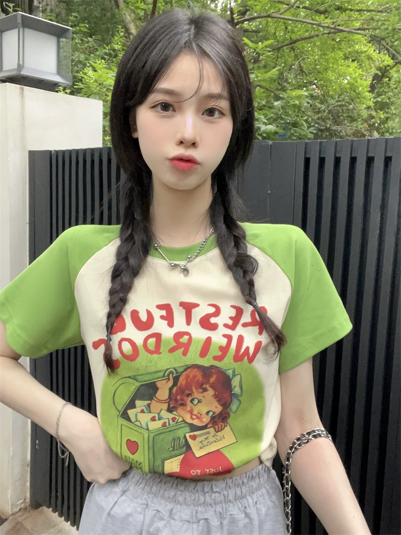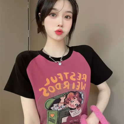 تي شيرت نسائي بتصميم جديد قصير الأكمام بتصميم كارتوني
