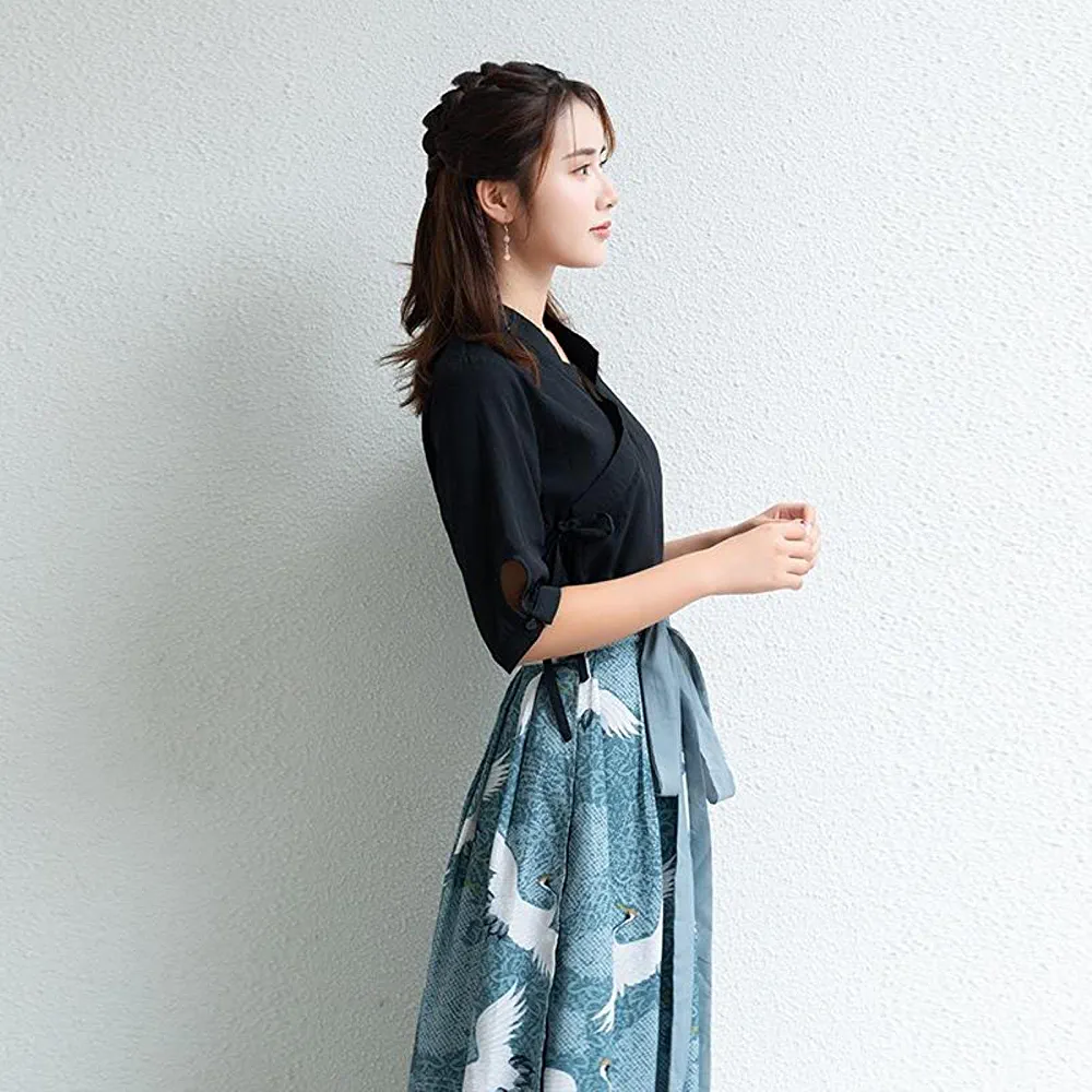 New Festival Hanfu Clothing Crane Printed Folk Dance Costume Top Skirt Set Traditional Chinese Clothing for Women Dress-top and skirt Suit,M