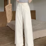 | nameOriginal | Women's two-button simple straight wide-leg denim trousers |