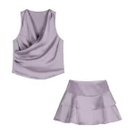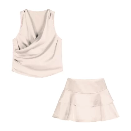 | nameOriginal | Women's v-neck sleeveless smart cake two-piece set satin |