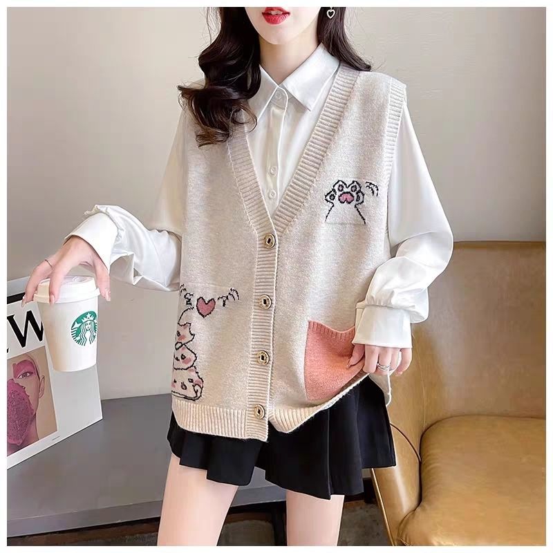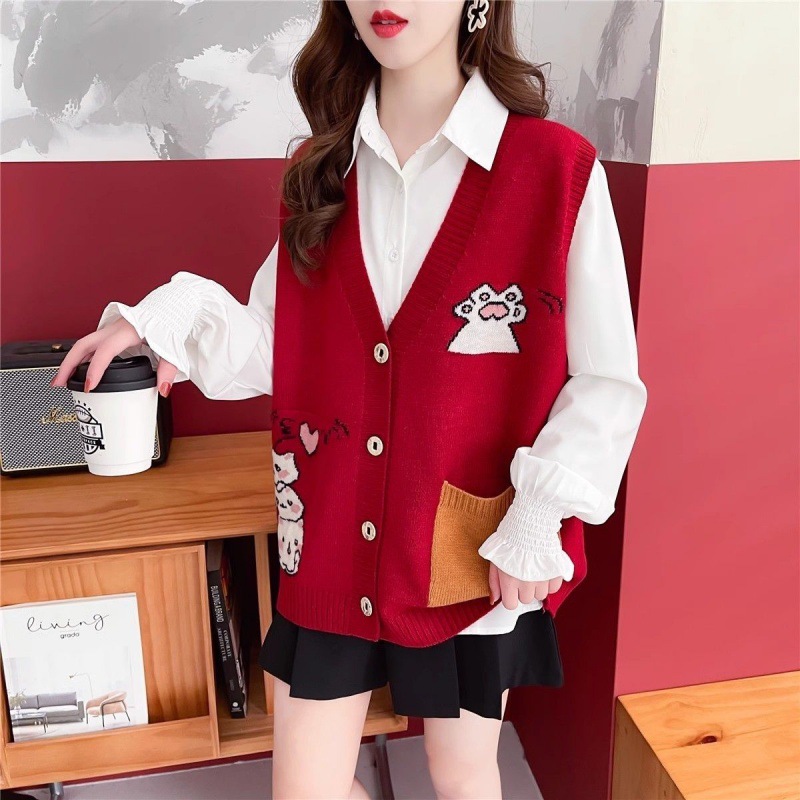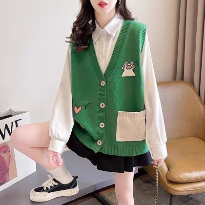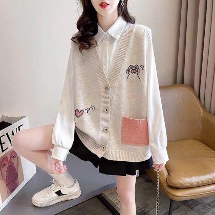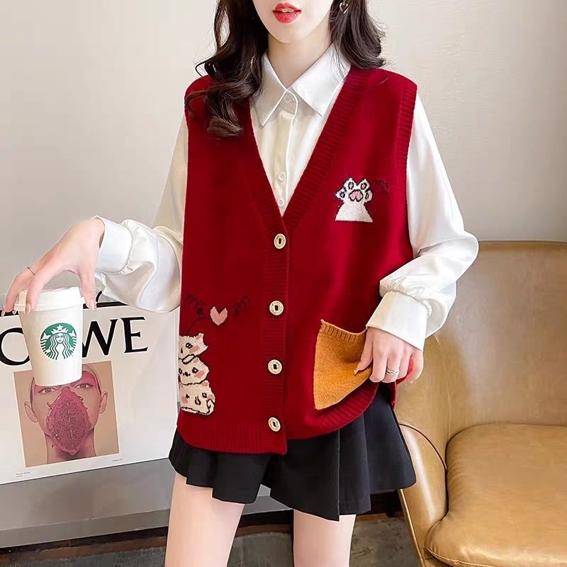 Women's Vest New Spring and Autumn Western Style Knitted Outer Wearing Vest regular Vest Loose plus size Jacquard Stitching Sweater Trendy