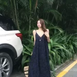 | nameOriginal | Women's vintage jacquard summer backless suspender dress |