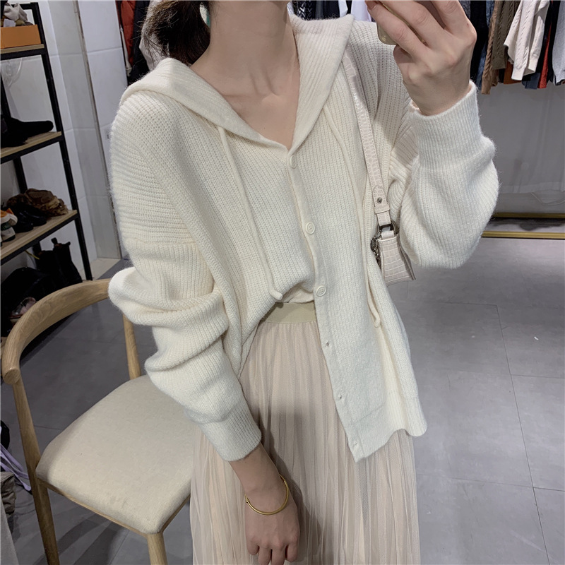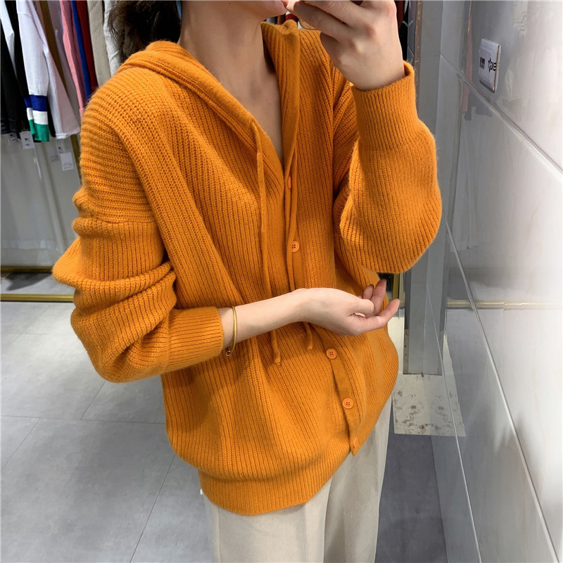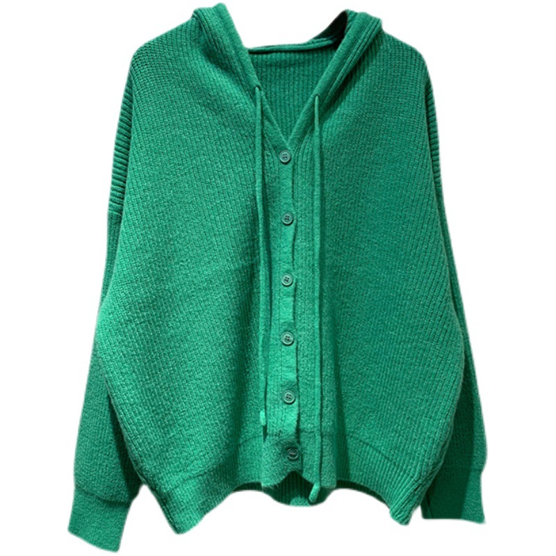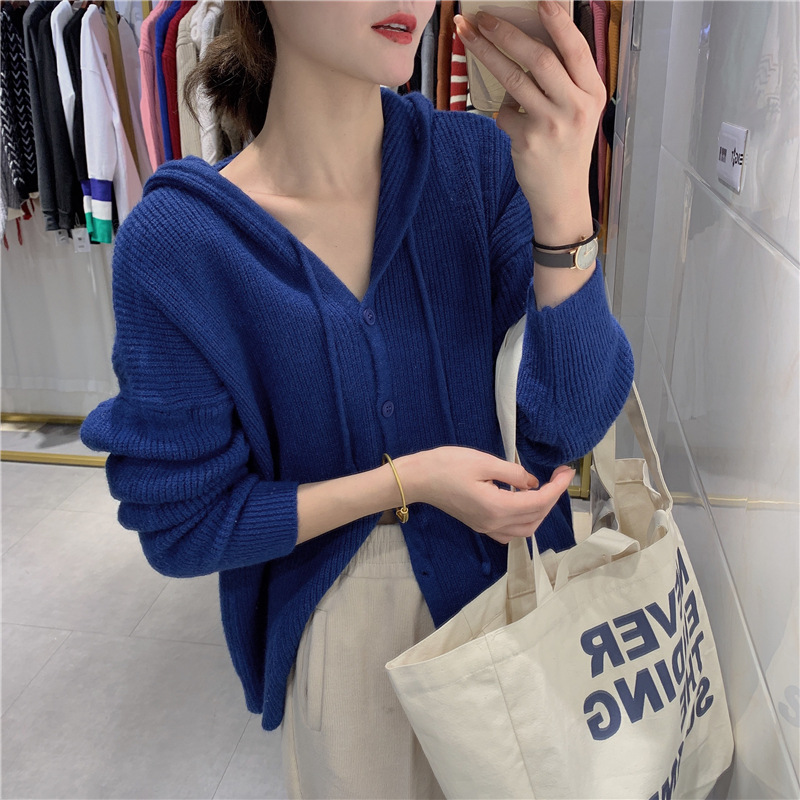 Women's wholesale Korean-style hooded casual single-breasted sweater women's coat new solid color loose knitted spring cardigan