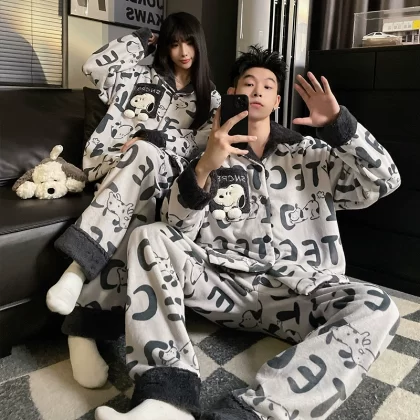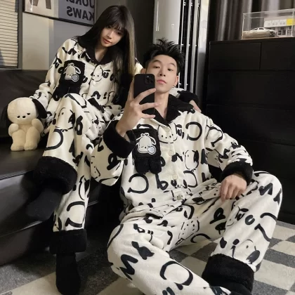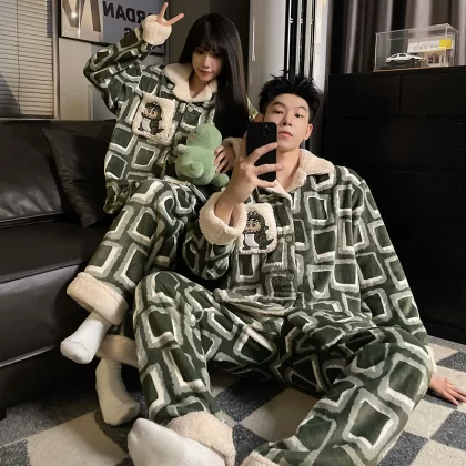 nameOriginal | Women's winter zippered thickened flannel couple's pajamas |