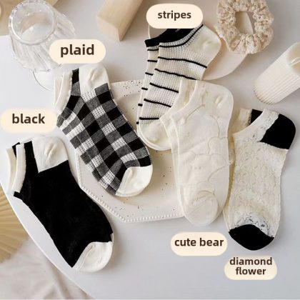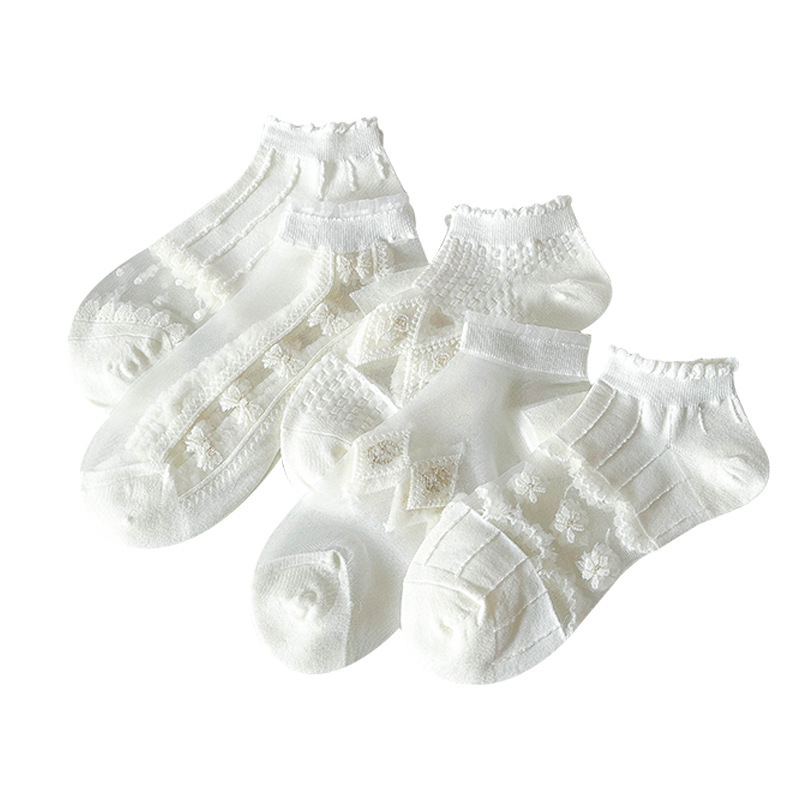 | nameOriginal | Women's wooden ear socks summer versatile hollow mesh white lace thin socks sweat-absorbent breathable glass Silk |