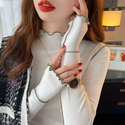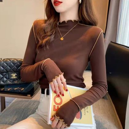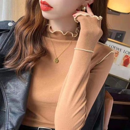 Wooden ear double-sided bottoming shirt de Velvet half turtleneck warm all-match style autumn and winter New inner wear slim top