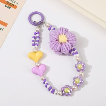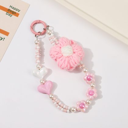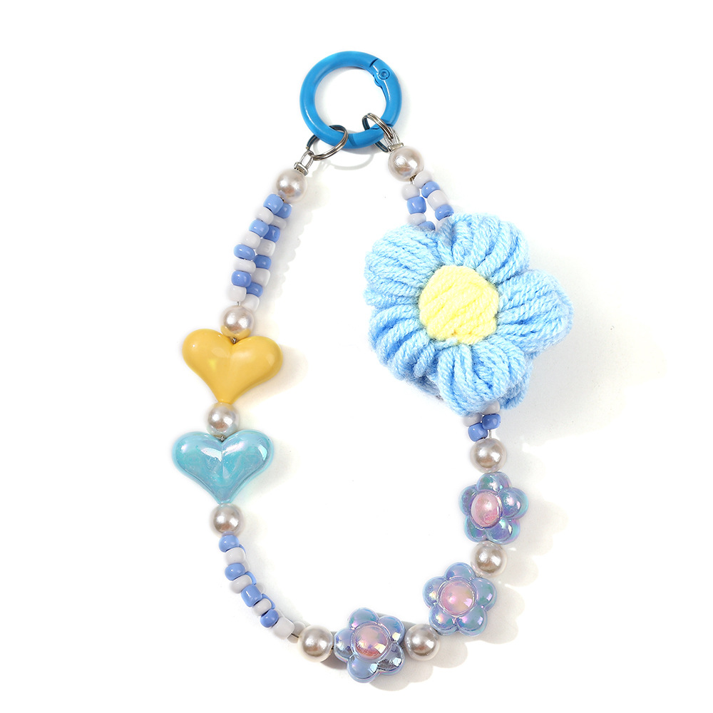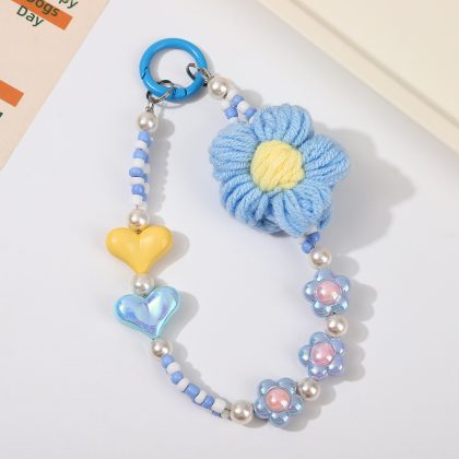 | nameOriginal | Wool woven contrast color flower mobile phone chain handmade beaded mobile phone ornaments keychain bag earphone pendant in stock |